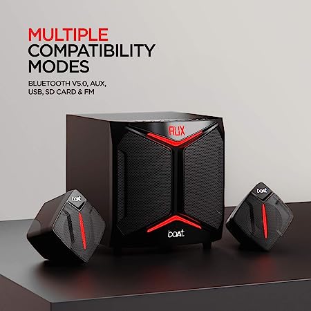 Experience unmatchable sound with 100W RMS boAt Signature Sound, as Blitz 2000 wired speaker won’t settle for anything less. With a 2.1 Channel Captivating Experience get unparalleled top quality bass that will make your heart and house thump. Enjoy to the fullest be it with beats, video games or your favorite movie. Coming with multiple connectivity modes including: Bluetooth, AUX, USB, SD Card & FM and 5 different EQ Modes – Pop, Rock, Jazz, Classical and Country, it is time for you to bring home the life of your party.