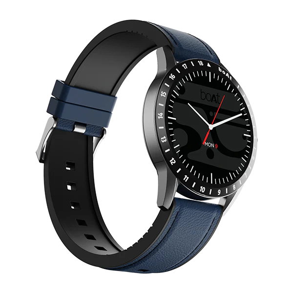 Smart round dial display with premium finish. Comes in Active Black, Flaming Red and Navy Blue, with silicone and leather finish straps to fall in love with.